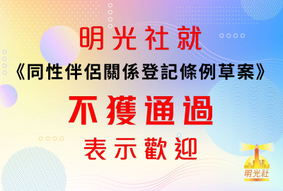 明光社就《同性伴侶關係登記條例草案》不獲通過表示歡迎