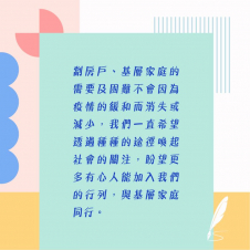 明光社一直關注基層家庭及學童的需要,在此與大家分享最近幾個與基層家庭相關的活動。