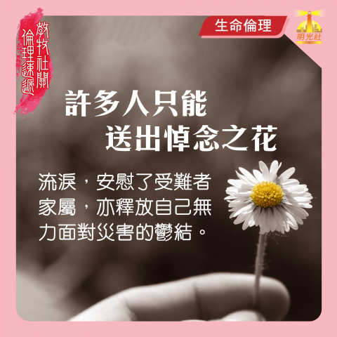神是愛從來不是一句空洞的神學口號,「耶穌哭了」——這位道成肉身的受苦者,面對人間種種災難時,同情受感,充滿憐憫。祂不但自己落淚,也希望跟隨祂的人在面對世界種種災難,不要變得麻木不仁,而是「與哀哭的人一同哀哭」(羅十二15《新譯本》)。或許,直到我們見主面,才能真正明白神為何容許一個又一個災難發生。然而此刻活在世上,可以做的還有很多,只要「動了慈心」,用自己的方式幫助受災者,便是神通過祂的兒女去支援及安慰有需要的人。神不是沒有行動,而是通過我們行動。