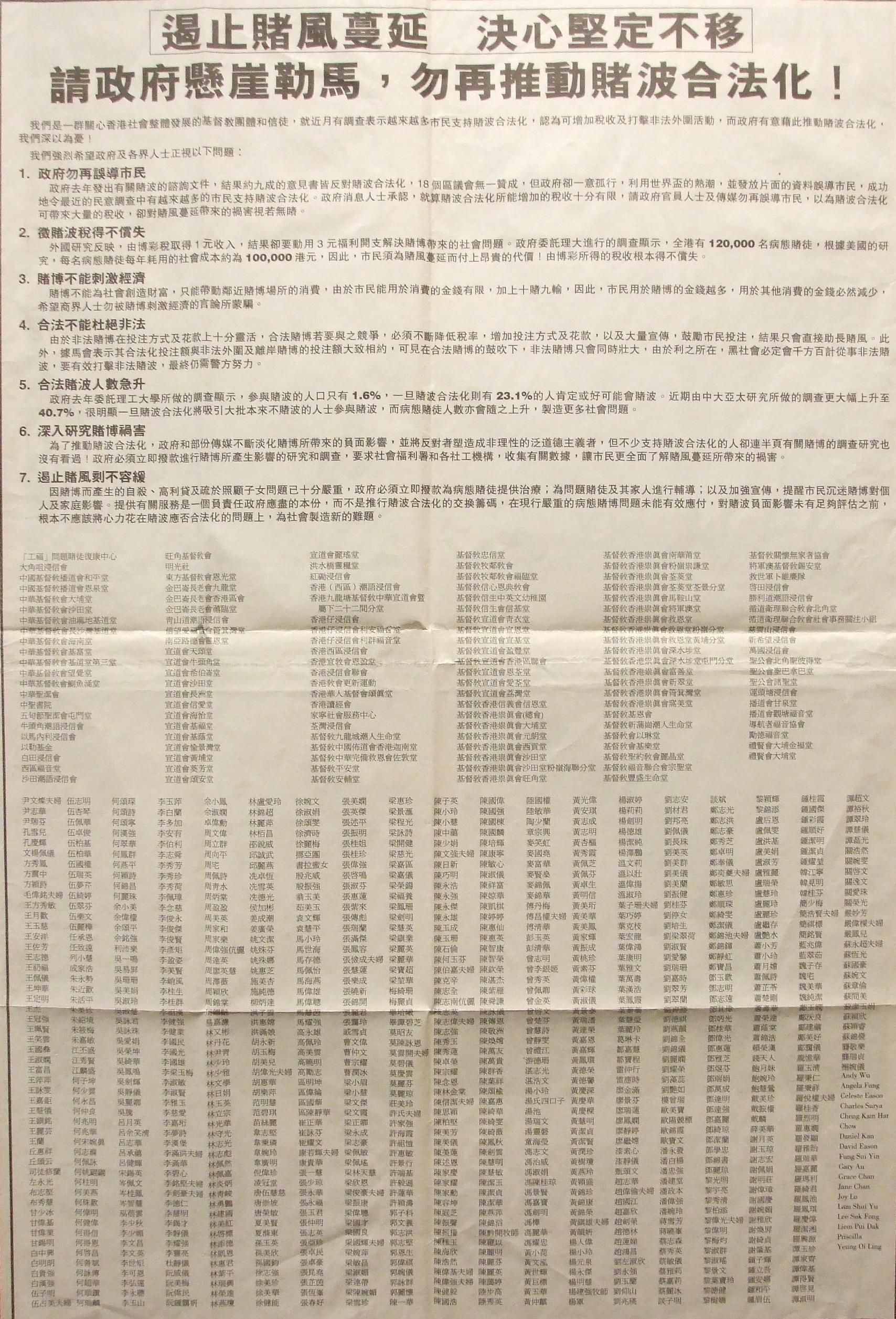 請政府懸崖勒馬,勿再推動賭波合法化!